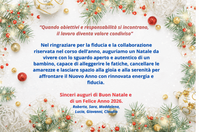 Chiusura Studio per le festività natalizie dal 24.12.2025 al 01.01.2026 (compresi) Per qualsiasi urgenza o necessità improrogabile durante il periodo di chiusura, potrà contattarci: inviando un’e-mail all’indirizzo info@studiosuardi.it (canale da privilegiare); utilizzando il servizio di casella vocale attivo ai nostri recapiti telefonici. Le chiediamo di specificare la motivazione dell’urgenza e i suoi riferimenti, in modo da poterla contattare nel…