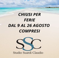 Comunichiamo che lo Studio resterà chiuso per le tradizionali ferie estive dal 9 agosto al 26 agosto p.v. compresi.